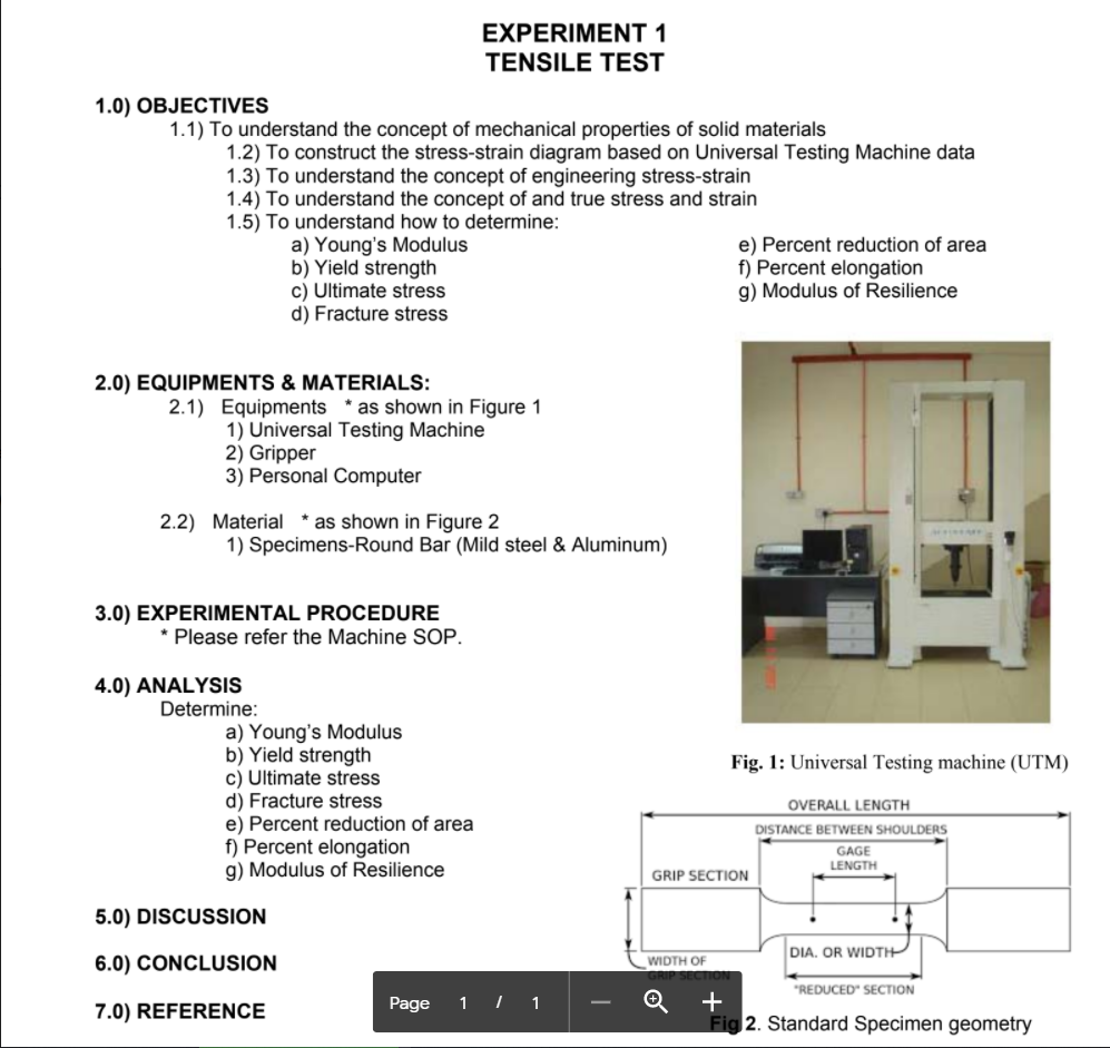 Solved Experiment 1 Tensile Test 1 0 Objectives 1 1 To Chegg Com